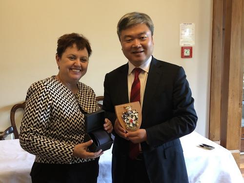 廖祥忠校长与麦考瑞大学副校长Nicole Brigg交换礼物
