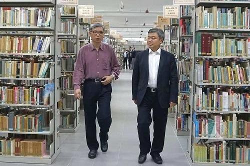 廖祥忠校长与新纪元大学学院校长莫顺宗参观学校图书馆