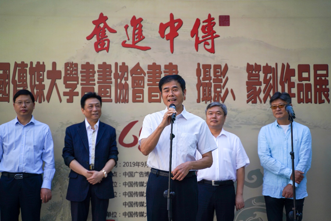 (通讯员 白婧妍 摄影 贾同尧 缑宇)金风送爽、翰墨飘香,为喜迎中华人民共和国70周年华诞,庆祝建校65周年,9月23日上午,中国传媒大学2019年“奋进中传”书画、摄影、篆刻展在广告博物馆正式开展。校党委书记陈文申,校长廖祥忠,党委副书记、纪委书记王达品,我校校友——北京书法家协会副主席田伯平等出席了开幕式。