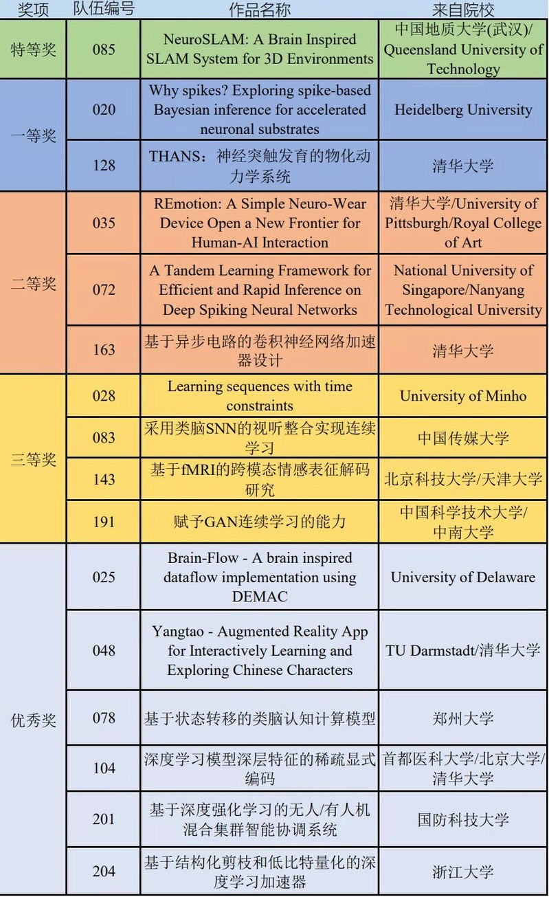 2019国际大学生类脑计算大赛获奖名单