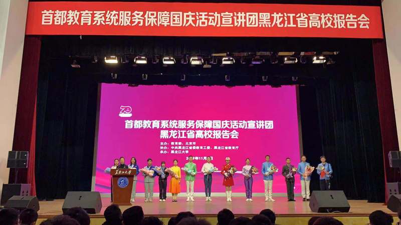 (记者 汲惠)为深入贯彻落实习近平总书记国庆系列重要讲话和批示精神,持续唱响爱国主义教育时代强音,根据教育部和北京市委教工委的安排,11月7日,由中国传媒大学和北京舞蹈学院联合组建的“首都教育系统服务保障国庆活动宣讲团”赴黑龙江高校开展宣讲活动。