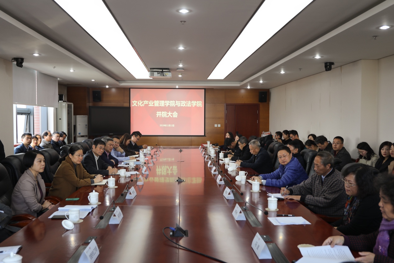 (通讯员 卜希霆 孙浪滔 摄影 王雷亭 郑凯文 周慕超)2019年11月12日,我校文化产业管理学院与政法学院并院大会在明德楼918会议室召开。校党委书记陈文申、校长廖祥忠,党委学生工作部、研究生院、教务处、学科建设与发展规划处、科学研究处、人事处、财务处、国有资产管理处、国内交流与合作处、校园建设处等部门主要负责人,两院全体教师参加大会。会议由我校学科建设与发展规划处庞亮处长主持。