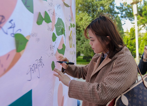 校园内还设有四处“校歌驿站”活动,返校的校友和师生们可以参与接力传唱经典校歌。参与者需要在“校歌九宫格”“挑战外语版校歌”“校歌你画我猜”三个有关校歌的小游戏中完成至少两项任务,凭借纪念章前去“唱校歌赢PASS卡”处进行终极挑战。终极挑战要求在100秒内演绎校歌,赋予校歌属于自己的独特风采。而幸运者将有机会获得“年轻的白杨”师生校友歌会的黄金席位。初冬的校园里,大家在“校歌驿站”唱响校歌,在歌声中回忆“广院之春”“风采之星”等学校活动。校园里,白杨树沙沙作响,校歌声声回荡,动人的旋律随风飞扬。