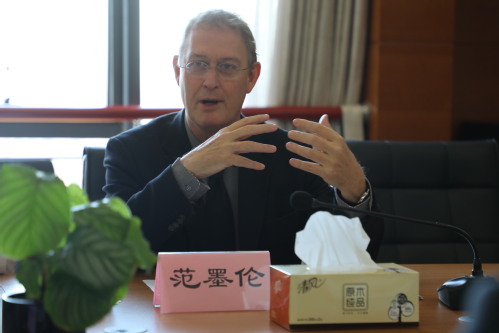 范墨伦校长对我校的热情接待表示感谢,对传媒大学的优异办学成果表示赞赏。他指出,基于双方多年的合作信任,会谈讨论的项目非常令人振奋。范墨伦校长详细介绍了海牙皇家音乐学院在荷兰及国际音乐教育领域所取得的重要成绩,以及ConNext音乐学院联盟的基本情况。他表示,目前联盟成员学院的院长都表达了对这一合作的兴趣,联盟成员学院涵盖芬兰、瑞士、挪威、比利时、美国、加拿大、新加坡、澳大利亚等国最高品质的音乐高等教育,与中国传媒大学在海南国际校区进行音乐创新教育的探索完美契合。相信在大家共同的努力下,海南国际音乐学院的建设不仅会为中国传媒大学的国际化办学作出重要贡献,也会为当地社区提供美丽的景观和重要的文化艺术资源。