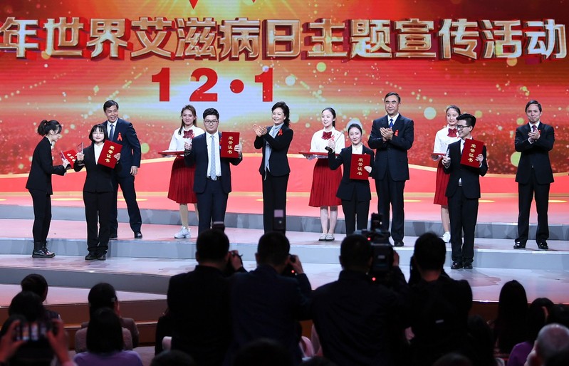 11月28日下午,世界卫生组织结核病/艾滋病防治亲善大使彭丽媛在中国传媒大学出席2019年世界艾滋病日主题活动,并为京津冀高校大学生艾滋病防控宣传知识挑战辩论赛获奖高校代表颁奖。国家卫生健康委员会副主任李斌、教育部副部长钟登华、北京市副市长卢彦一同出席活动。
