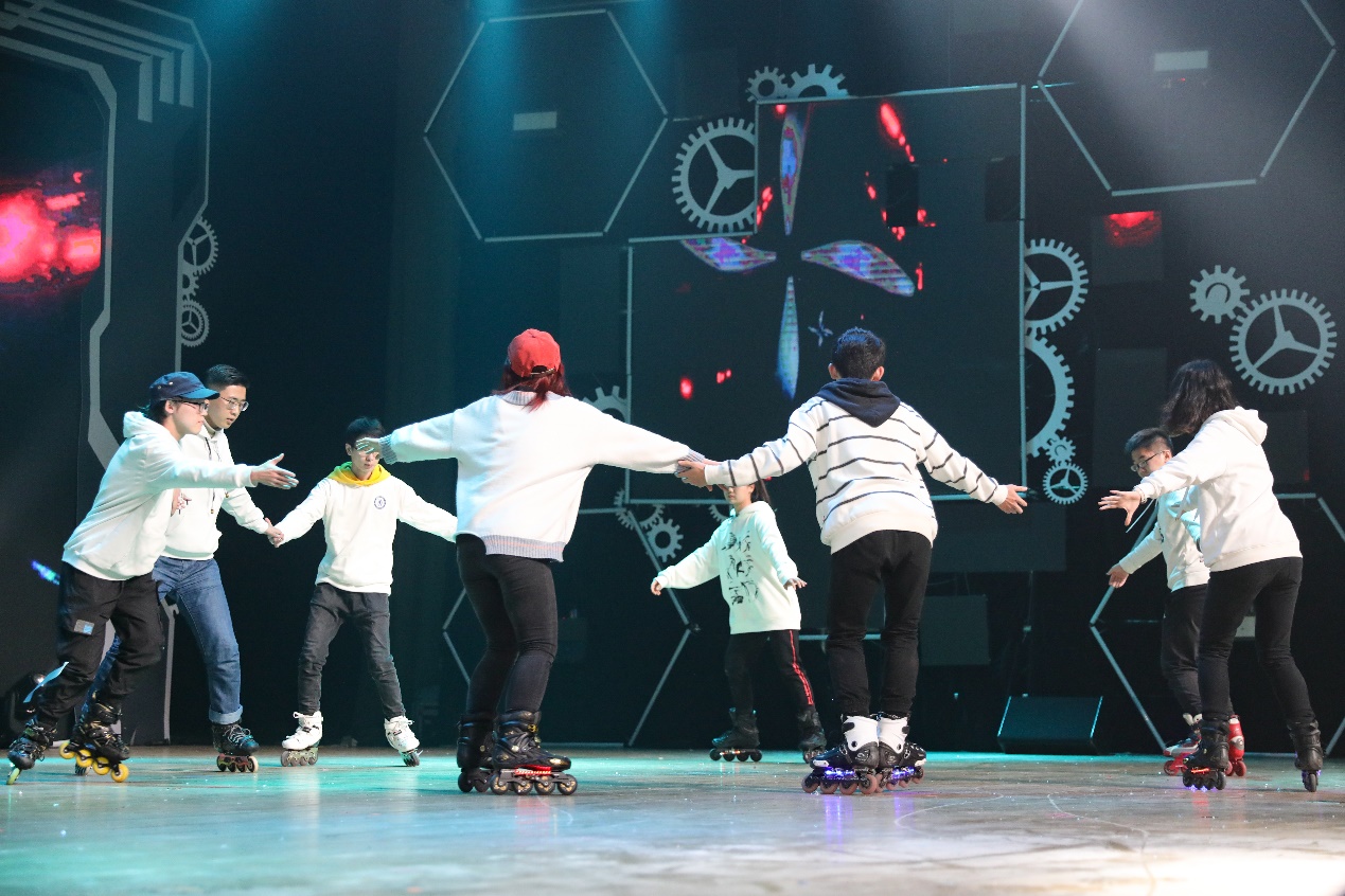 展演的第三个篇章,TRY动漫社的《Arknights-INFECTED》表演者们动作错落有致,令人赞叹;X滑行者-冰雪轮滑俱乐部的成员们脚踩轮滑鞋,在动感的音乐中展现出人鞋合一的高超技术;音匠们各司其职,默契配合,制音工厂的一首《不自然》为观众带来了一场听觉盛宴;DE舞社的另一支舞蹈《Stay With》可爱活泼的舞姿营造了温暖而又快乐的时光;子衿汉服社成员们伴着典雅的乐声舞动,一幕动人的《醉太平》将古老的故事轻轻诉说;动感的节奏与优美的旋律巧妙融合,Sirens Boom说唱社的一首《火力联合》带领观众感受说唱的魅力;PASSWORD街舞社用《Blow up》的舞蹈表演为活动再添高潮;最后,身处大洋彼岸的魔术师刘果楠带来隔空魔法,与在场观众进行互动。