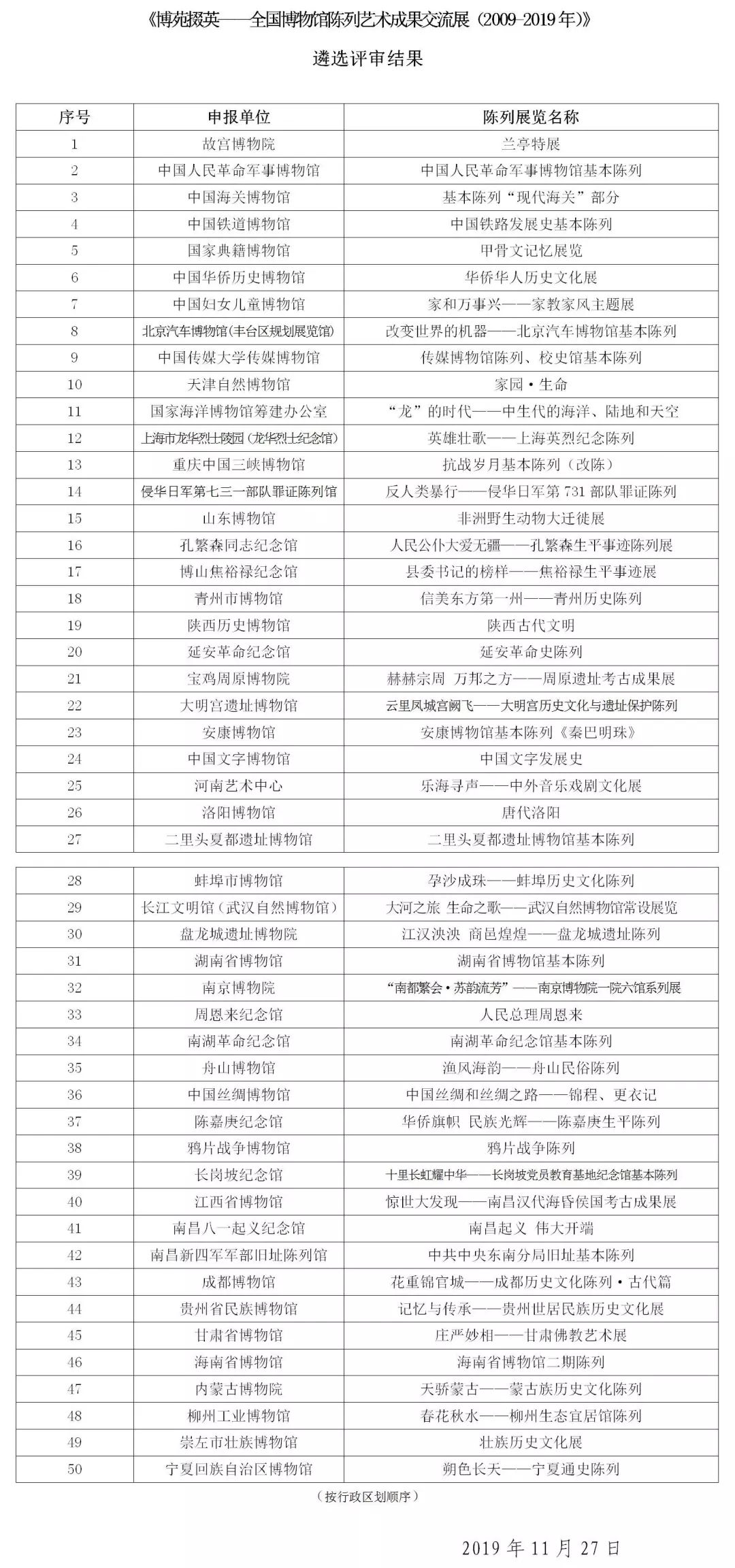 附:博苑掇英一一全国博物馆陈列艺术成果交流展(2009-2019年)评审结果