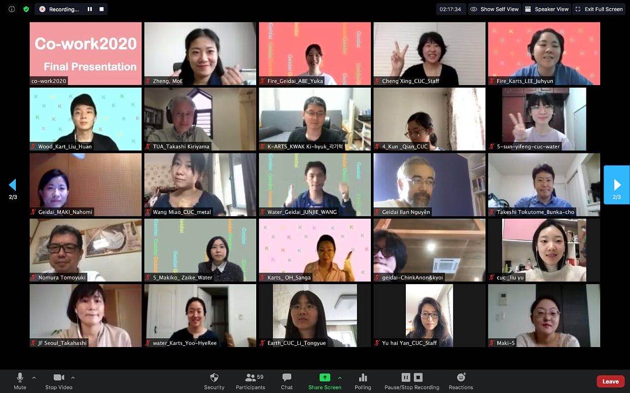 8月29日上午9时(北京时间)在线上举办项目展映会,三校教育主管部门嘉宾及往届成员共同观看了展映。教育部国际司亚非处郑晗副处长应邀观看展映,肯定了中日韩三校在“亚洲校园计划”中的努力与成绩,希望未来能够多探索新的沟通方式,推动中日韩文化交流的全方位发展。三校“亚洲校园计划”负责人——我校科研处处长贾秀清教授、东京艺术大学副校长岡本美津子教授,韩国艺术综合大学动画系主任李廷珉教授分别发言,祝贺展映成功举办。