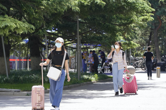 人文学院2017级娄佳琪同学说:“看到返校通知特别激动,第一时间就预约了首批返校。老师们和班委每天在群里提醒我们做好返校准备。今天的返校很快很顺利,进校后我从南门走到北门,脑海里唯一的念头就是‘我到家了’。”经济与管理学院2017级王丽媛同学对学校的暖心服务印象深刻:“返校真的很快乐,回到了亲切的校园,见到了熟悉的同学,志愿者师弟还帮我把行李箱搬运过了天桥,学校一条龙报到服务太体贴细致了。真的要好好夸夸学校的准备工作,点个赞!”