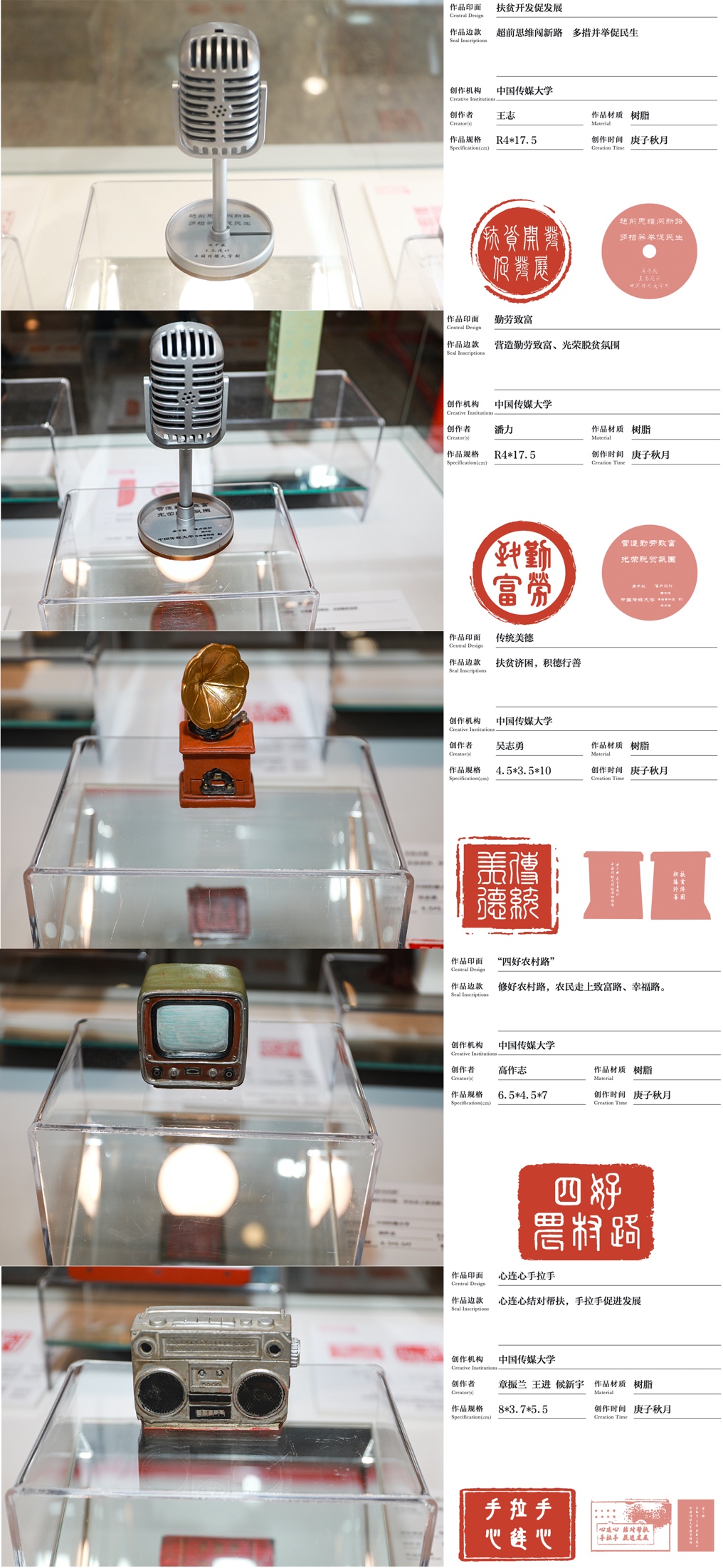 本次展览从筹办到展出历时四个月。在大众篆刻征集活动中,主创人员在印面、印章的创意理念以及外观设计方面,融入中国传媒大学的大学精神、校园文化和学科特色,凸显“传媒文化、传媒教育、传媒行业”新时代高校公共文化服务体系元素。最终,由我校师生设计、制作的5枚印章入选本次主题作品展览中,全面展示了我校师生的设计理念与创新能力,充分展现了中国传媒大学在传承和繁荣中国传统文化方面的历史担当。