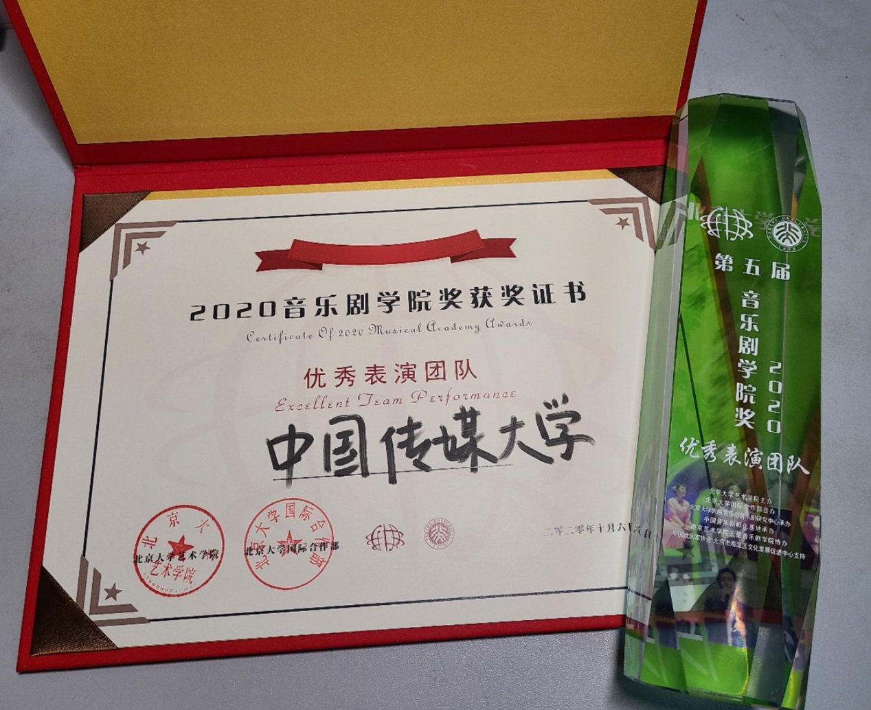 中国传媒大学戏剧影视学院表演系音乐剧专业2017级音乐剧双学位师生们在第五届“音乐剧学院奖”大赛展演中表现优异,获得专家评委一致好评,并在指导教师朴仁先(韩国)、杨扬、王娜柳、晴飞(日本)的带领下,凭借韩国原创音乐剧《洗衣服》片段,荣获“优秀表演团队奖”。团队片段导演为安婧祎,演员包括汪欣韵、任洪乐、娄睿、任思涵、刘壮、叶东卓、王煜明、李子馨等多位同学。