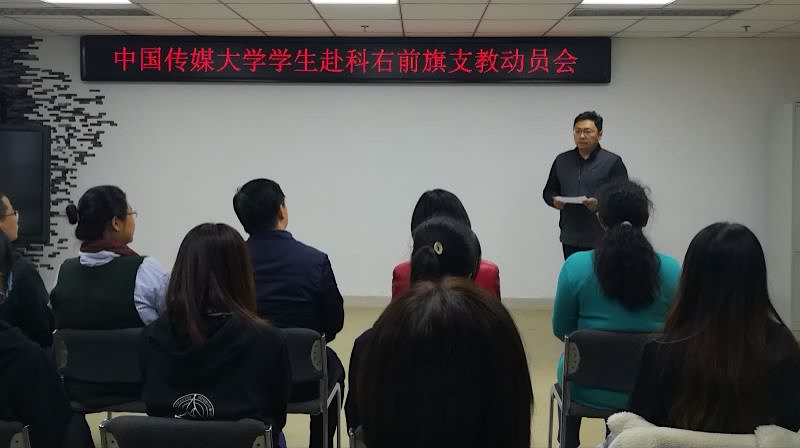 (通讯员 陈莹峰)为响应学校号召,落实定点帮扶举措,指导并动员赴科右前旗学生支教团各团员发挥专业所长,做好定点帮扶支教工作,10月16日下午4时,中国传媒大学学生赴科右前旗支教动员会在校团委209青马教室举办。校党委副书记姜绪范,党政办公室主任兼国内交流与合作处处长徐红梅,学生工作部(处)部(处)长兼校团委书记郭婧娜,校团委副书记陈莹峰,国内交流与合作处副处长杨垒垒,播音主持艺术学院党委副书记陈卓,戏剧影视学院党委副书记朱传欣,音乐与录音艺术学院党委副书记樊娜及支教团师生出席了本次动员会。动员会由杨垒垒同志主持。