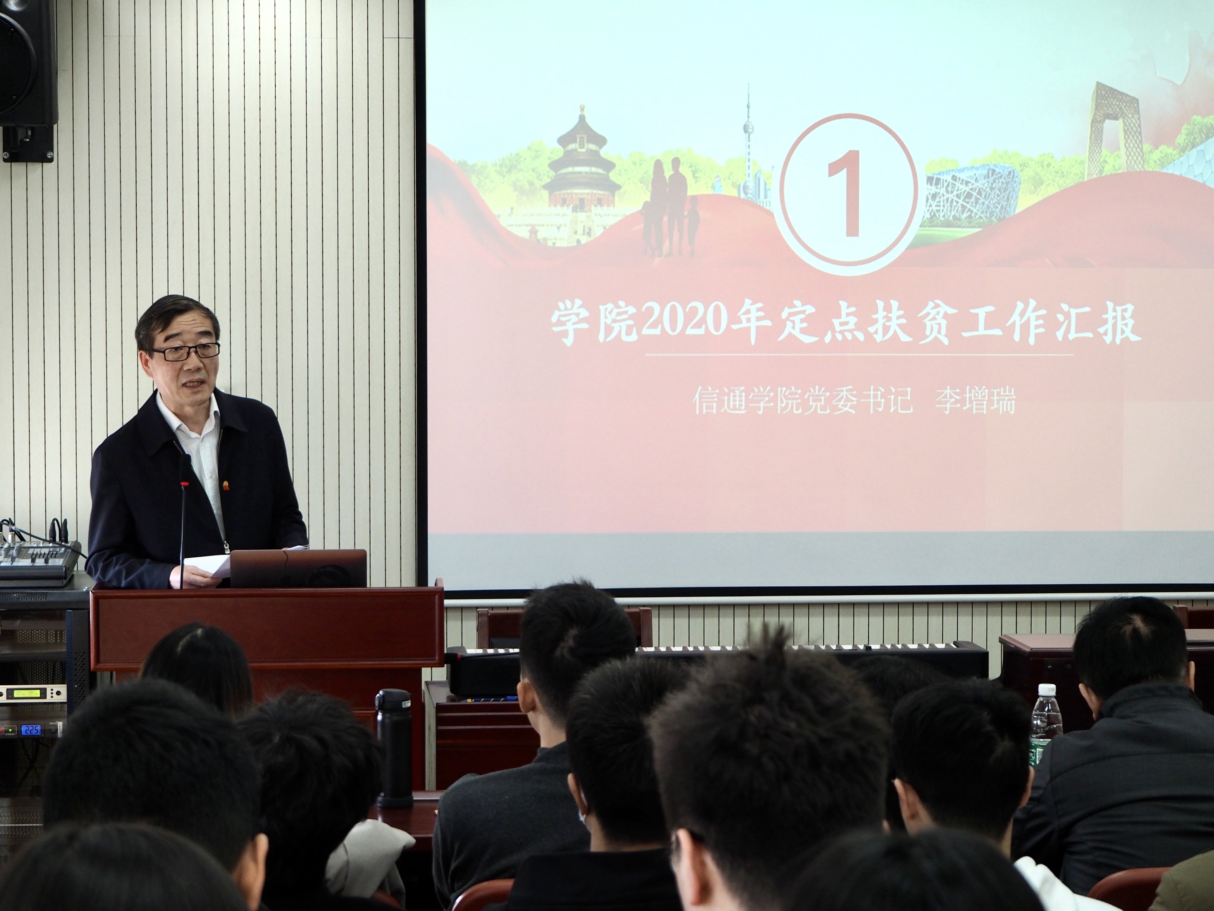 会议伊始,全体参会人员共同观看了扶贫成果短片。李增瑞书记就学院党委2020年定点扶贫工作作了汇报。