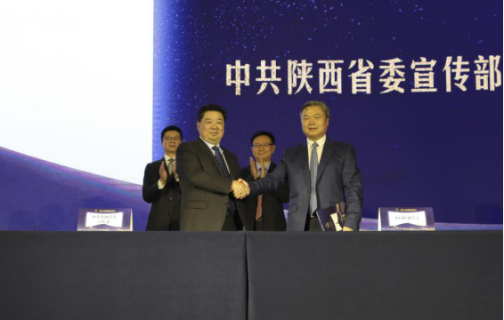 签约仪式上,陕西省委宣传部还与我校签署了战略合作框架协议,王吉德副部长、廖祥忠书记代表双方签约。战略合作框架协议也将推进陕西省影视产业的发展。