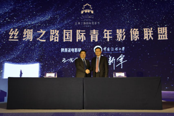 本届丝绸之路国际电影节,中共陕西省委宣传部电影局与我校共同发起了丝绸之路国际青年影像联盟项目倡议书,旨在建立“一带一路”影像合作交流平台,建立运行机制,推进项目合作,促进多边合作及交流。陕西省委常委、省委宣传部部长牛一兵,省委宣传部常务副部长、省电影局局长王吉德等出席签约仪式。