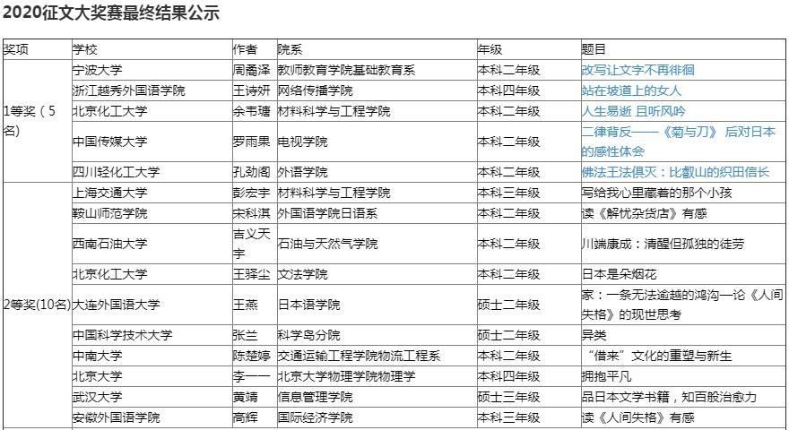 “笹川杯品书知日本”2020全国征文大赛全国大赛每年举办一届,我校今年首次参赛即斩获一等奖,充分展现了中传学子丰富的知识储备、良好的文学素养和阅读写作能力,呈现出当代大学生对中日社会差异的别样化思考。本次征文大赛的圆满举行,丰富了同学们的校园文化生活。图书馆作为学校的文献信息资源保障中心,将秉承传播“多读书、读好书”的理念,致力于为广大师生提供优质的服务,开发、开拓更多的资源和渠道,为中传学子提供更广阔的阅读和展示平台。