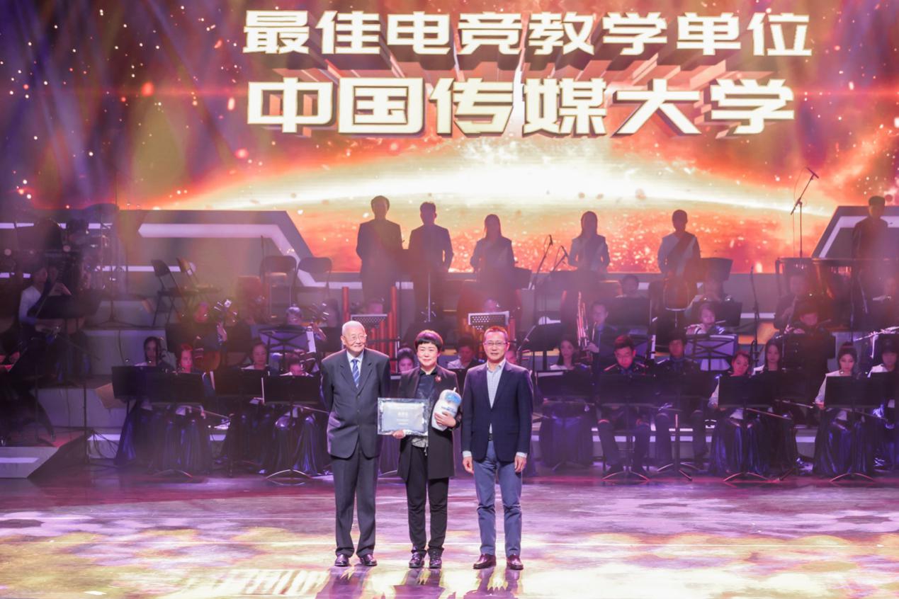 全球电子竞技联合会副主席魏纪中、北京市国有文化资产管理中心主任刘绍坚为最佳电竞教学单位颁奖