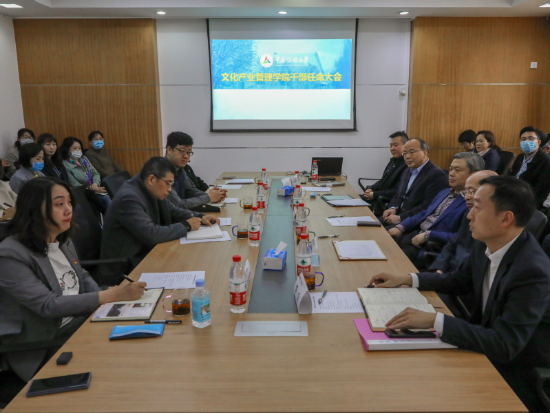 李众副书记宣布了学校党委关于学院干部任命的决定,聘任熊澄宇为中国传媒大学资深教授、文化产业管理学院院长,张洪生任文化产业管理学院执行院长。会议由文化产业管理学院党总支书记卜希霆主持。
