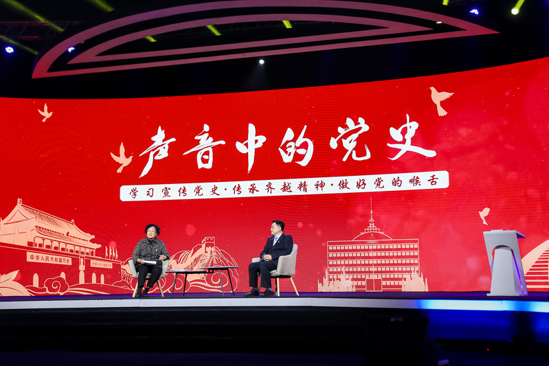 主题党课结合学校传媒专业特色,围绕“声音中的党史”主题,通过回望、致敬、传承三个篇章,以播放新中国广播事业的奠基人之一、中国共产党优秀播音员齐越老师的播音片段,结合党史故事讲述、现场访谈、视频连线、互动交流等方式,引导师生学习宣传党史,传承齐越精神,坚定传媒理想,做好党的喉舌。