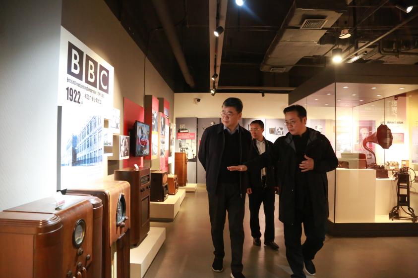 随后,刘兵书记一行来到校史馆和传媒博物馆参观。传媒博物馆馆长潘力结合展陈内容,向来宾介绍了学校的发展历史、办学特色以及传媒行业的发展历史,传媒博物馆的展陈藏品与特色。他表示,校史馆、传媒博物馆已经成为开展校史校情教育、传媒发展史教育的重要基地,深受师生好评。