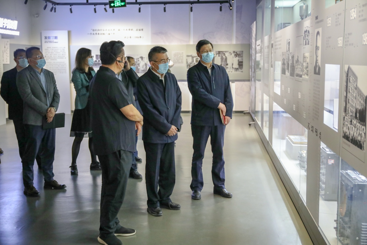 在校史馆、传媒博物馆,潘力馆长结合展陈内容向戈晨主任介绍了学校发展历史、办学特色和发展理念,重点介绍了在中国共产党领导下新闻传媒事业不断发展壮大的历程。他表示,校史馆、传媒博物馆已经成为我校开展党史教育、“四史”教育、校史教育、传媒史教育的重要课堂,成为大学师生传承红色文化、弘扬红色基因的重要阵地。