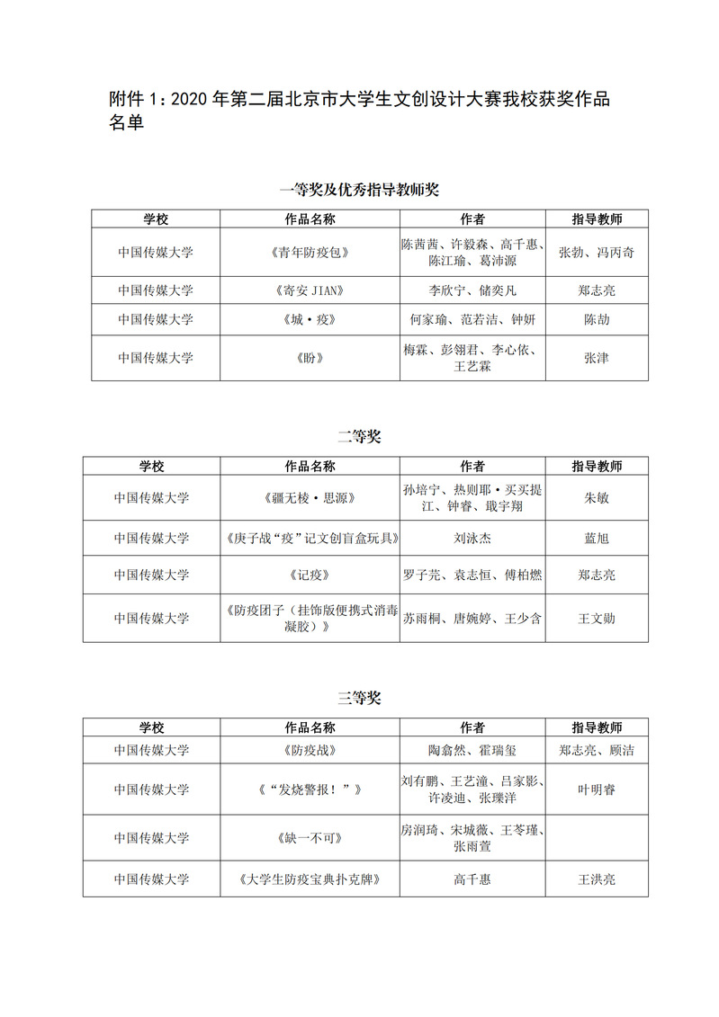 2020年2月以来,中国传媒大学以全民抗“疫”为生动题材加强课程思政建设、开展专业实践活动,创作了一批优秀作品。自北京市文创设计大赛作品征集以来,在学校教务处积极推动下,各学院积极组织学生参赛,最终推选出37部作品参加北京市级比赛。