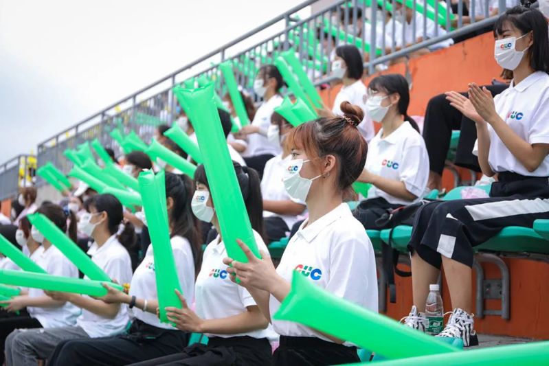 在《中传新一步,等你去探索》开场视频后,行为表演《奔跑的青春》活力登场,同学们手持红色、绿色、蓝色气球,往来穿行于新生方阵,以轻盈身姿展现中传学子的才艺之光、体育之美,逐渐汇聚成巨幅CUC图案,随后放飞气球,象征着中传学子放飞梦想,志向远大。
