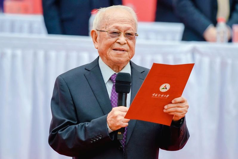 开学典礼特别设置了尊师致敬环节,由廖祥忠书记代表学校党委向离退休老教授车洪才献花致敬,全体师生起立向车洪才教授致以崇高的敬意。