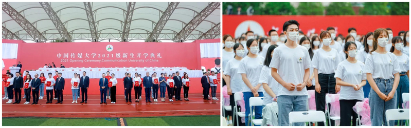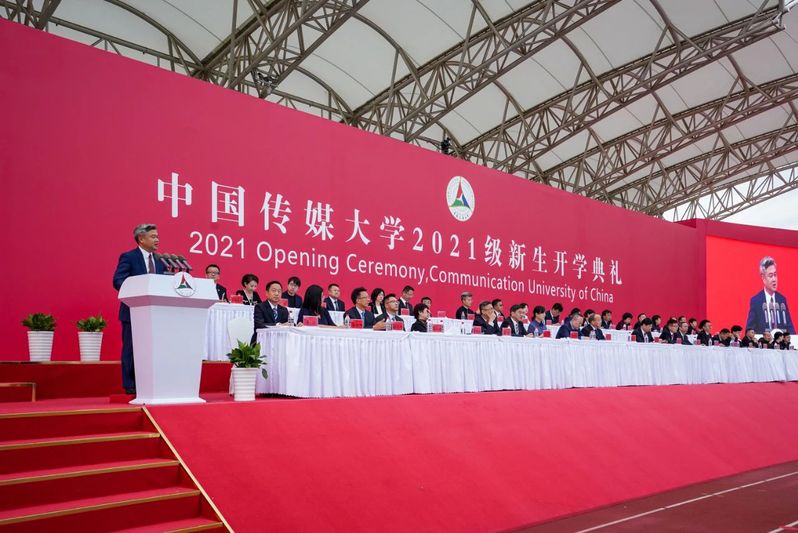 典礼环节中,庆祝中国共产党成立100周年大型情景史诗《伟大征程》总导演陈维亚、总撰稿朱海、电视转播总导演张晓海,中国游泳运动员、奥运冠军张雨霏,中国跳水运动员、奥运冠军王涵,中国举重运动员、奥运冠军吕小军六位嘉宾也以视频的形式,给新生送来了祝福,寄语同学们努力学习、奋斗拼搏,成为勇挑时代重担的传媒人。