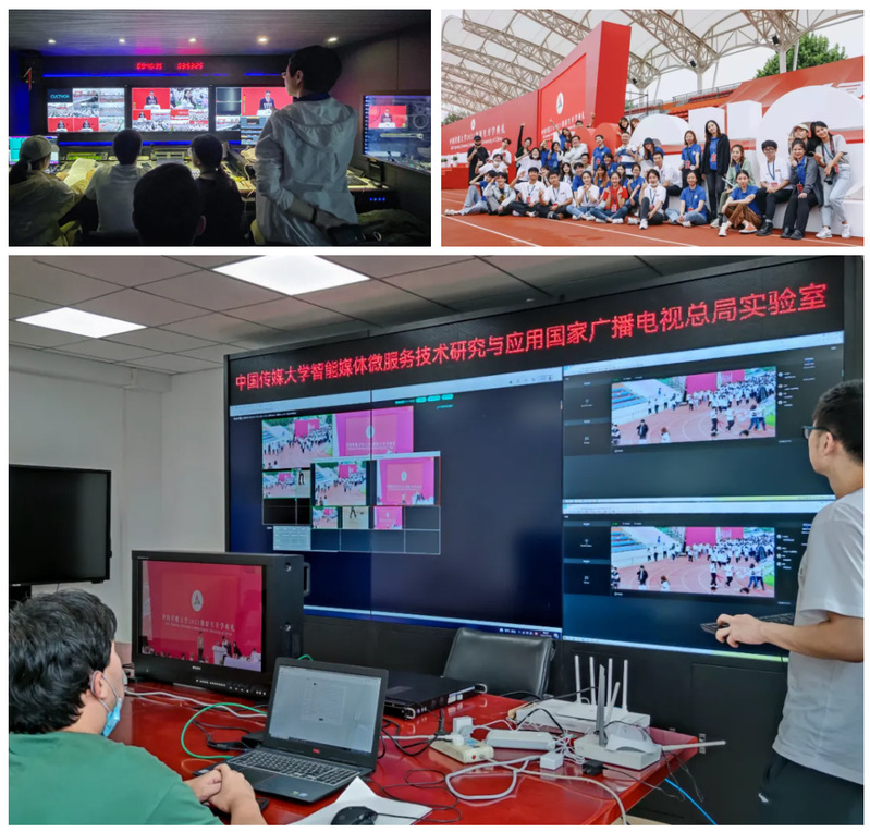 在本次开学典礼现场,中国传媒大学智能媒体微服务技术研究与应用国家广播电视总局实验室及共建单位还通过中国移动的云-网环境,利用5G及光纤网络配合上下行传输,完成了多路4K云转播全链路首次技术测试。