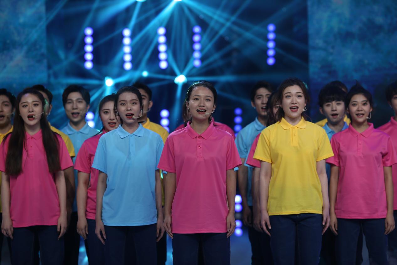 我校戏剧影视学院音乐剧专业2018级音乐剧双学位班全体同学,在“美丽中国”主题的专场演出中,以音乐为载体,齐唱歌曲《星辰大海》,礼赞伟大祖国。