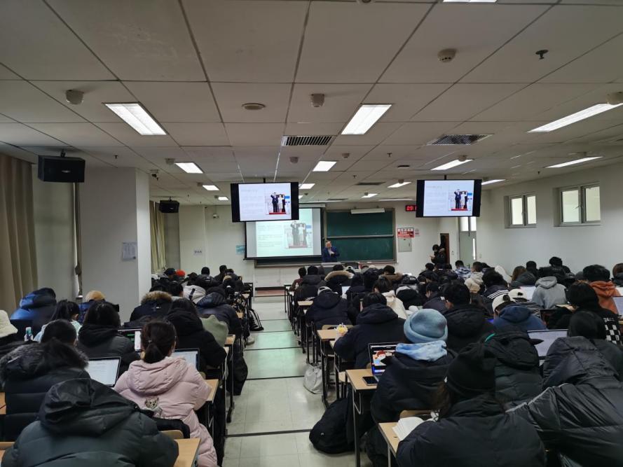 段鹏副校长以延安时期毛泽东写给美军观察组机械师戴斯汉姆少校的一份信件引入主题,带领同学们走进中国共产党百年对外传播的历史长廊。通过展示许多难得一见的珍贵史料,段鹏副校长系统回顾了革命年代、抗日战争和解放战争年代、社会主义建设和改革时期以及新时代中国共产党在对外传播方面取得的主要成就,并对各阶段的成功历史经验做了深入的学理分析。段鹏副校长的授课内容丰富、逻辑清晰、讲述生动,不仅为学生带来一堂高水平思政课,也为青年教师做了一次高质量教学示范。