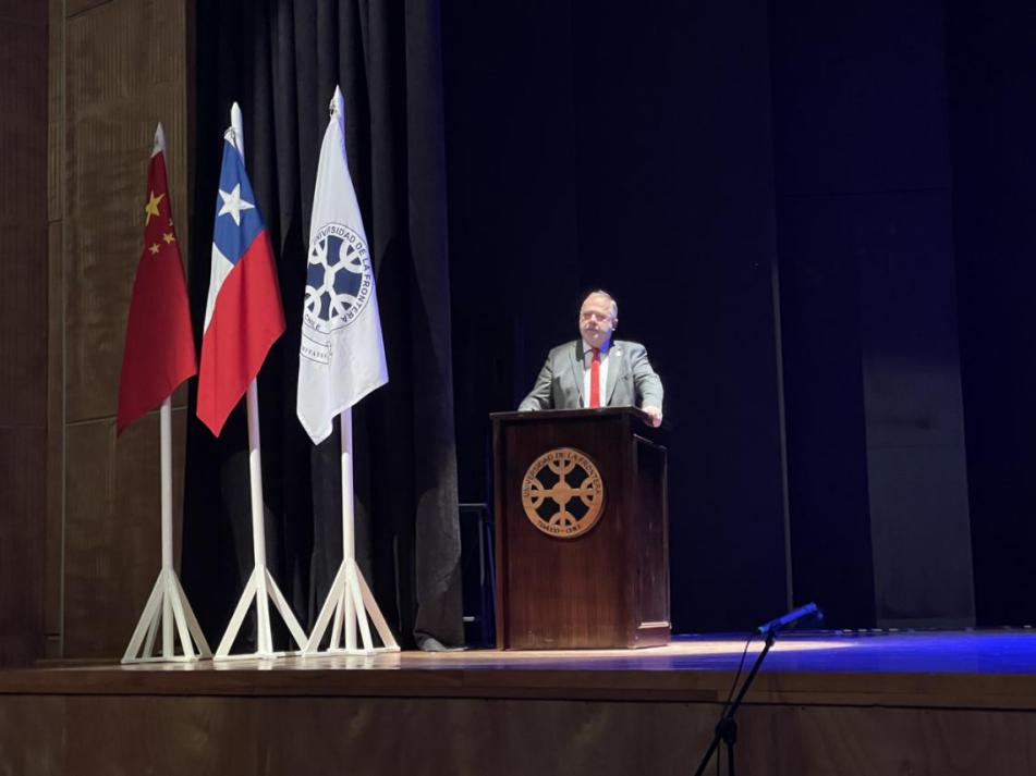 牛清报大使在致辞中对智利边境大学四十周年华诞以及孔子学院成立一周年表示热烈祝贺,对智利边境大学孔子学院在促进中智文化交流方面做出的贡献给予充分肯定。