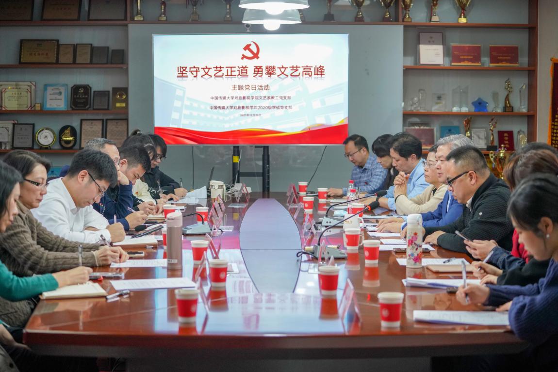 戏剧影视学院党委书记蓝旭、院长关玲、副院长付龙参加学习座谈,戏剧影视学院文艺系教工党支部、2020级学硕党支部全体党员参会学习。学习会由校团委书记、戏剧影视学院党委副书记朱传欣主持。
