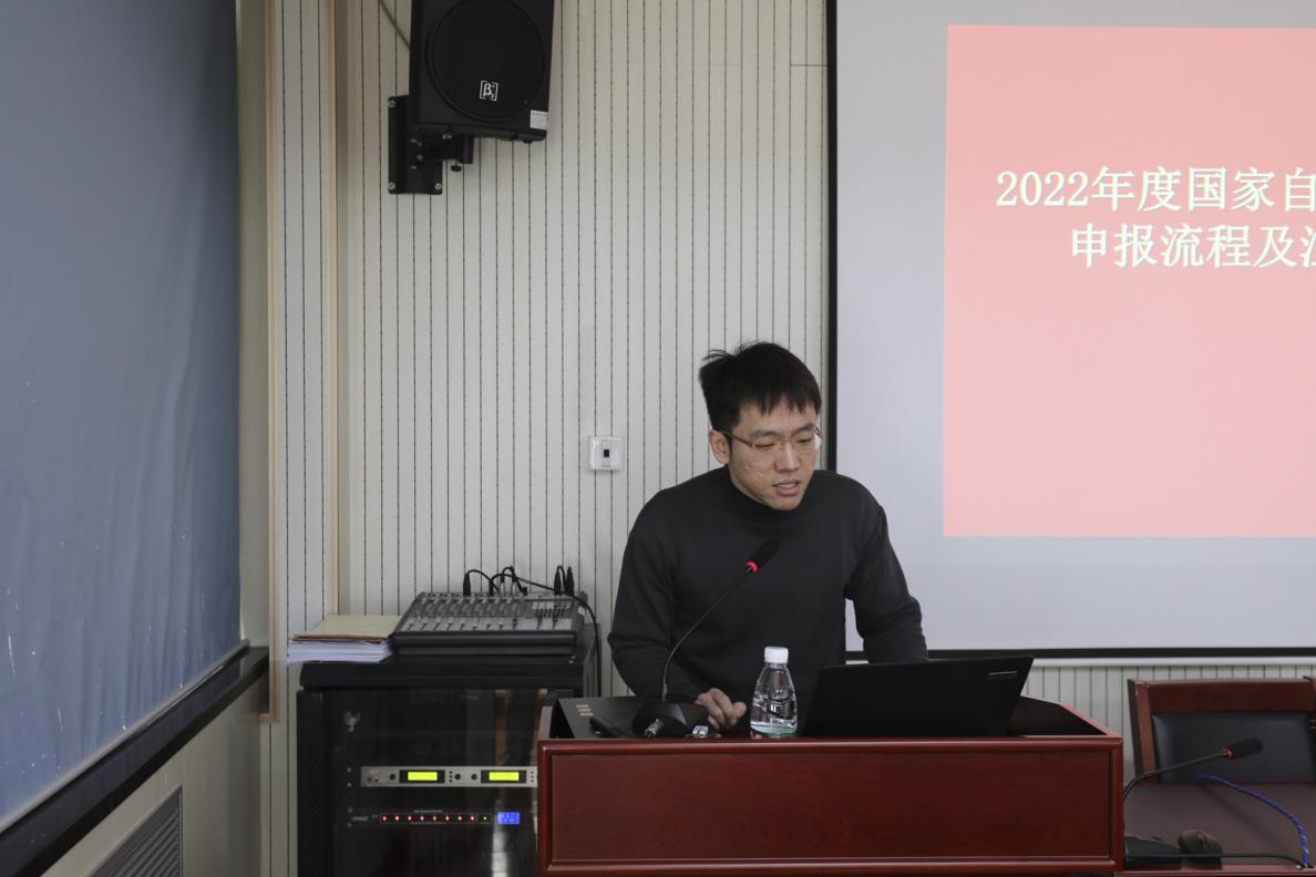 宋金宝副处长全面总结了2021年度我校的科技工作。他表示,学校对科研工作高度重视,在校领导的关心指导和老师们的共同努力下,2021年我校科技工作取得了突破性成绩。宋金宝副处长还向与会老师作了2022年国家自然科学基金申报动员,鼓励大家立足国家战略、依托学科特色、发挥专业优势,积极做好申报准备。