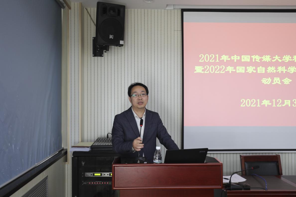 (通讯员 王珏 买根 摄影 李晓磊)2021年12月30日,“2021年中国传媒大学科技工作总结暨2022年国家自然科学基金申报工作动员会”科研工作坊专场活动在主楼八层报告厅顺利举行。科学研究处副处长(主持工作)周建新、副处长宋金宝,信息与通信工程学院党委书记李增瑞、副院长金立标,经济与管理学院副院长严威,特邀嘉宾北京交通大学轨道交通控制与安全国家重点实验室常务副主任艾渤教授等参加会议。
