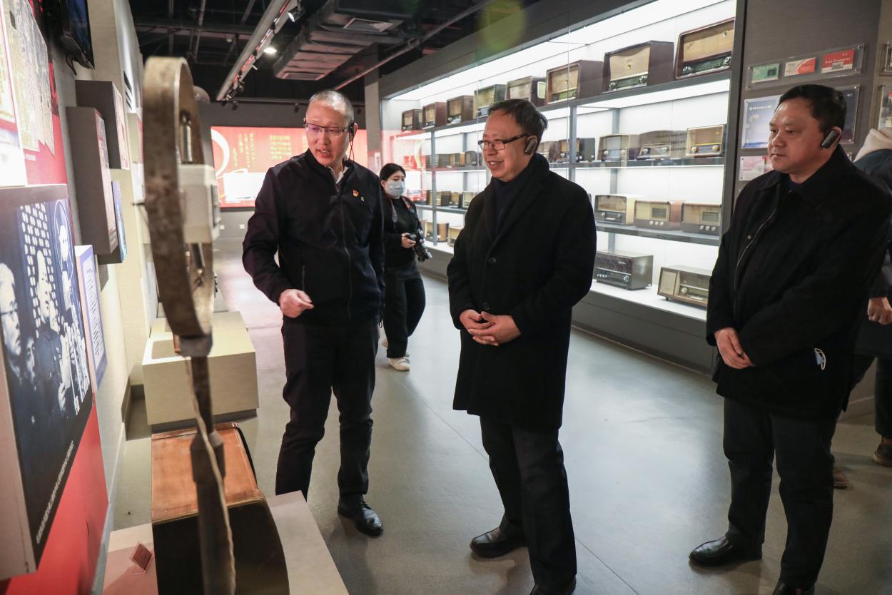 在校史馆和传媒博物馆,王平主席一行详细了解学校的办学历史、办学特色以及传媒各领域的历史演进、行业发展,充分感受中国传媒大学的办学特色、发展成就和文化积淀。