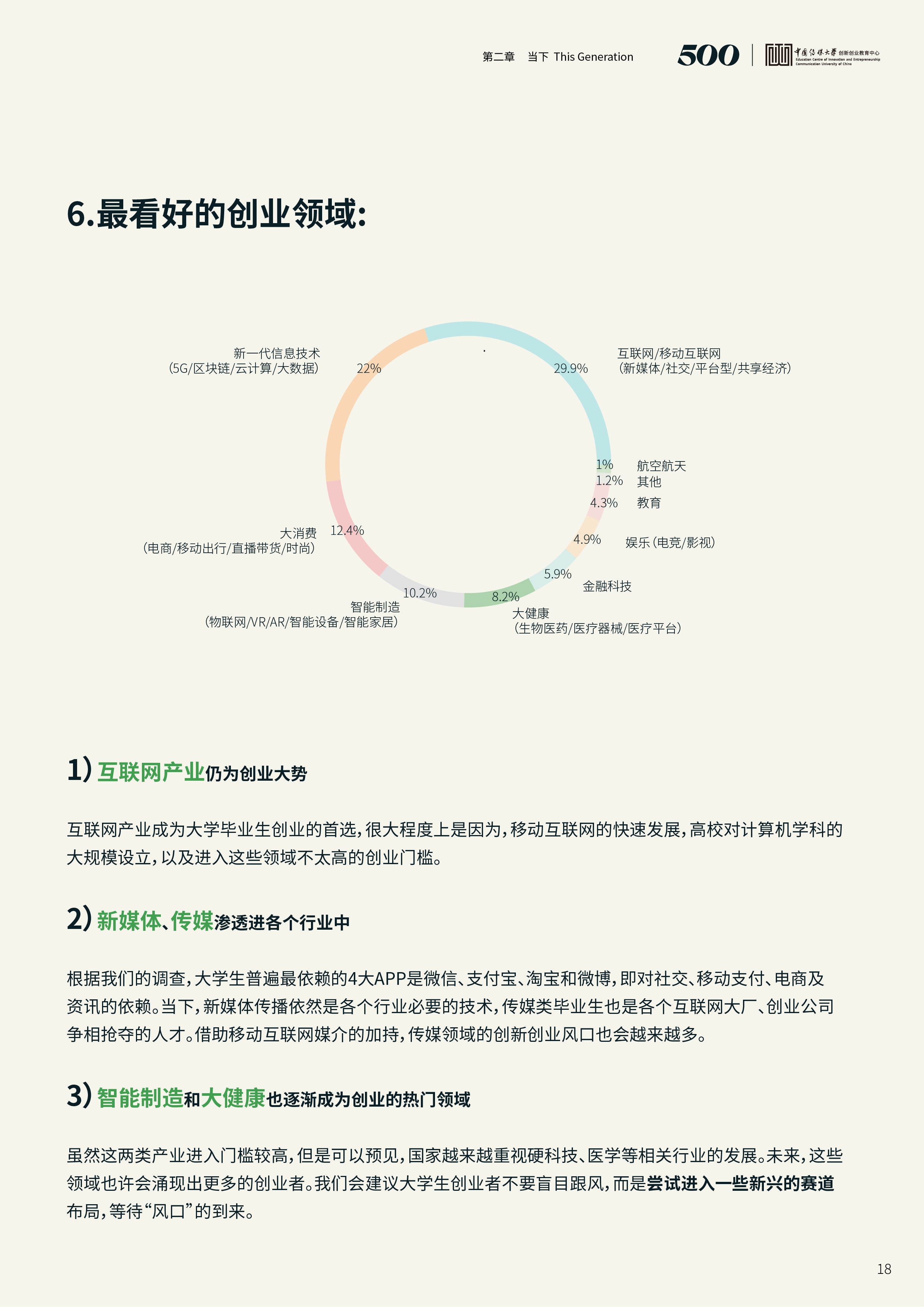 该报告的主要目的是引导大学生培养创业思维,并将创新思维、冒险精神带到学习和生活中。另一方面,该报告也积极倡导建立起多元化、可持续的创业生态。