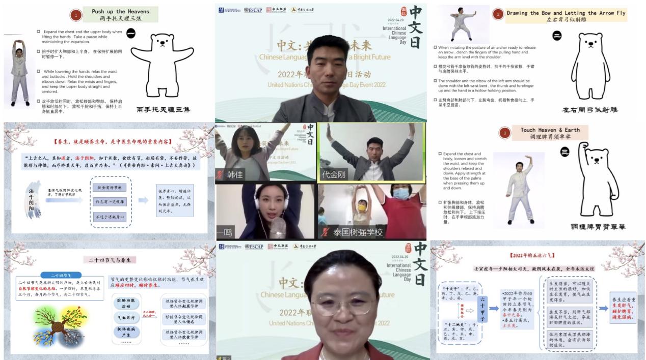 (通讯员 郑博文 于海琪 王楚楚 赖明发 摄影 赖明发 王楚楚 罗圣寅 张儒裕 章如玉 韩琳红 于海琪 杨依婷)4月20日下午,“中文:共筑美好未来”2022年联合国中文日主题庆祝活动圆满举办。本次活动由中外语言交流合作中心-曼谷中心和联合国亚洲及太平洋经济社会委员会主办,中国传媒大学媒体融合与传播国家重点实验室承办,中国传媒大学人文学院(汉语国际教育中心)协办。