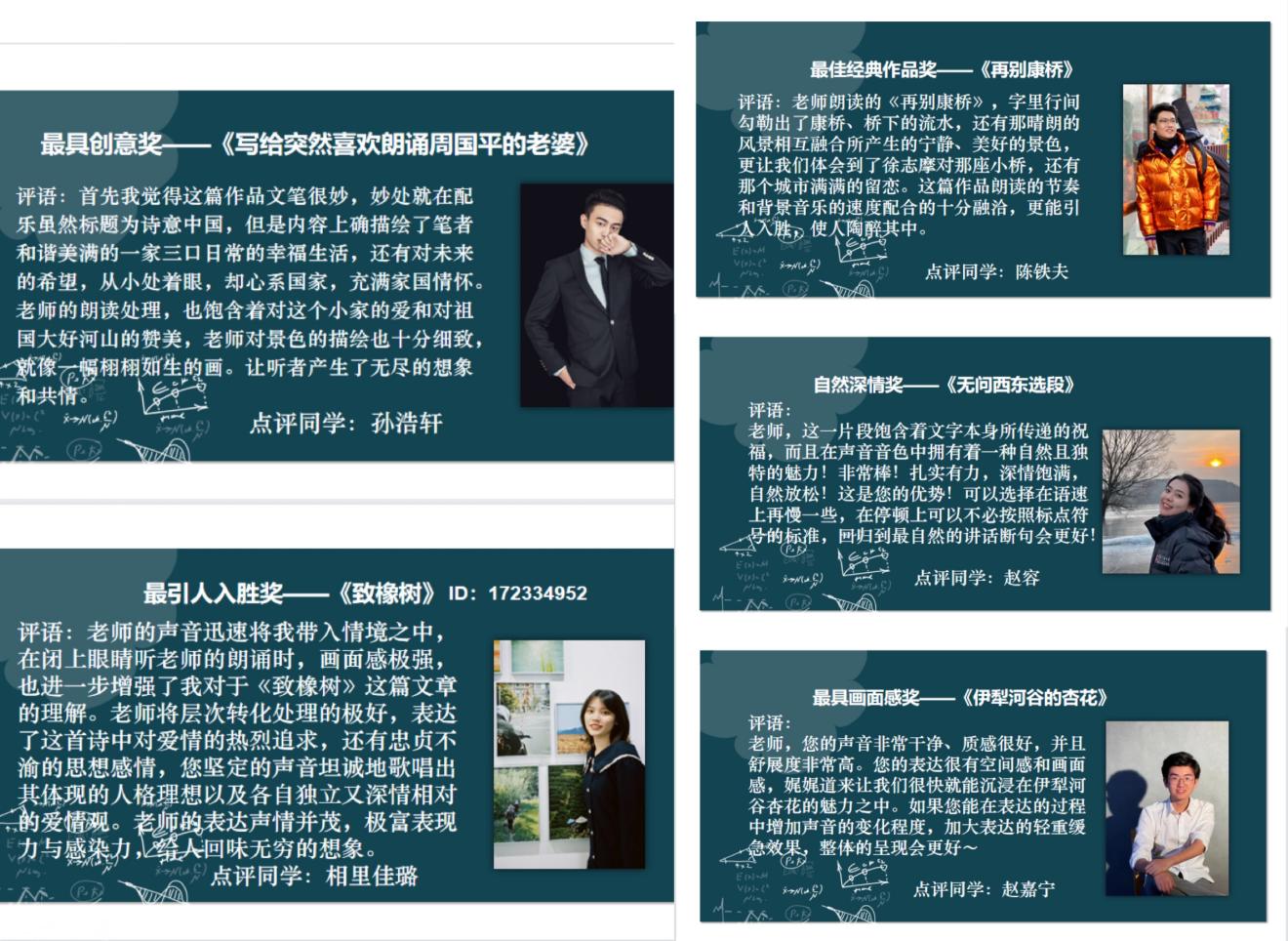 王宇红老师创新讲课方式,围绕“良好课堂教学氛围营造导向下的科学用声的理念、方法和训练技巧”主题,邀请播音主持专业学生和人文学院辅导员郝玥老师制作短视频《科学发声小课堂》,以丰富、活泼的形式,再现用声场景,提示训练要点。并采用“教师交作业、学生点评”的方式翻转课堂评价机制,逐篇点评了参训老师们在两周时间内提交的练声作品,形成了师生之间的良好互动。