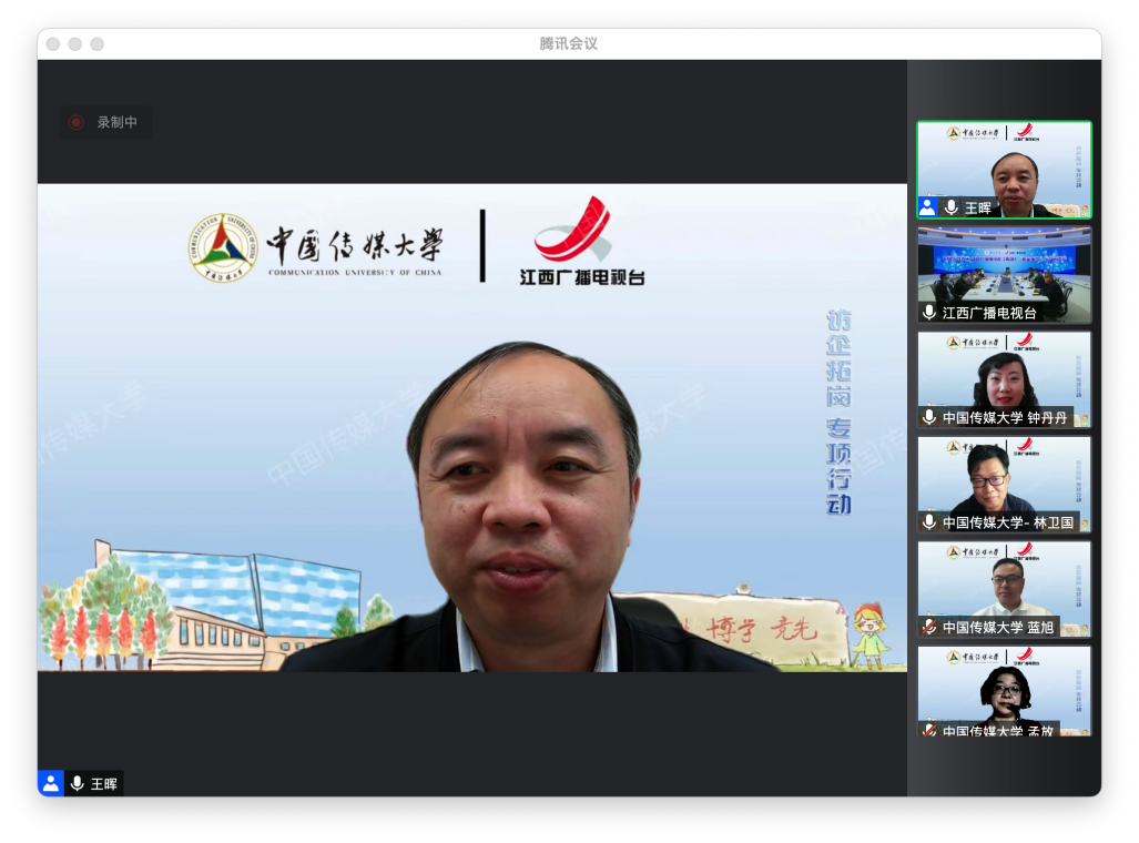 王晖副校长回顾了我校与江西广播电视台的合作历程,代表学校感谢江西台长期以来对我校的支持,并介绍了近年来学校推出的系列改革举措以及开展本次“访企拓岗”专项行动的重要意义。王晖副校长谈到,中国传媒大学作为“双一流”重点建设高校,承担着为党育人、为国育才的职责使命。学校高度重视毕业生就业工作,希望以本次交流为契机,进一步促进校台双方在人才培养、实习就业、科学技术研究、创新战略合作等层面,开展更全方位的交流合作,实现“优势互补、合作双赢”。
