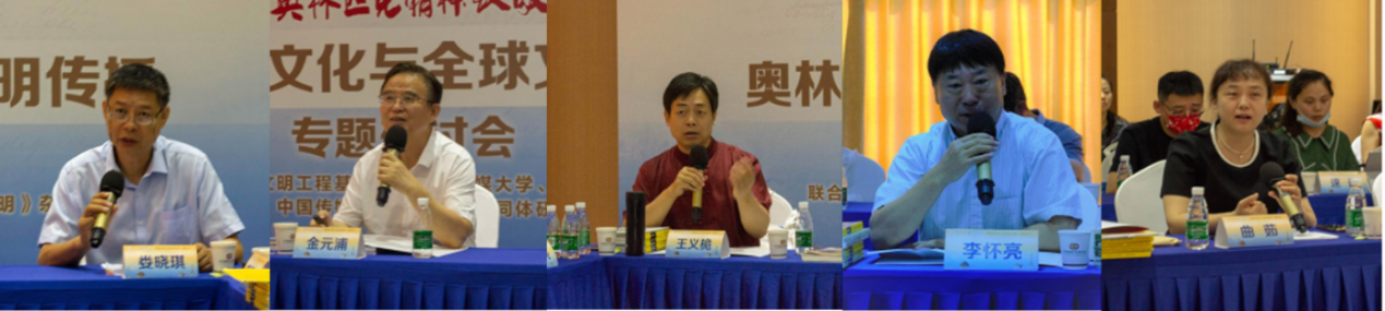 研讨会圆桌发言环节由人类命运共同体研究院副院长姬德强、副院长王四新主持。首都文明工程基金会执行会长、《文明》杂志社社长兼总编辑娄晓琪,中国人民大学教授、北京市习近平新时代中国特色社会主义思想研究中心特约研究员金元浦,中国人民大学国际关系学院教授、欧盟“让·莫内”讲席教授王义桅,北京第二外国语学院首都对外文化传播研究院院长、北京对外文化传播研究基地主任曲茹,首都文明工程基金会秘书长、首都文明工程发展研究中心首席研究员季燕京,中国社会科学院新闻与传播研究所世界传媒研究中心主任张丹,当代中国与世界研究院期刊出版与学术交流中心副主任谭震,中央广播电视总台国际传播规划局高级编辑、海外评估核查处处长李宇,中国传媒大学人类命运共同体研究院院长李怀亮、副院长姬德强围绕奥林匹克精神与人类命运共同体理念作了发言,分析了北京“双奥之城”与奥林匹克文化全球传播的成功实践,指出奥林匹克精神是人类命运共同体精神谱系的时代篇章,中国提出的人类命运共同体理念,为全球文化传播、文明对话提供了借鉴,奥运文化传播对未来数字化国际传播领域的研究意义重大。