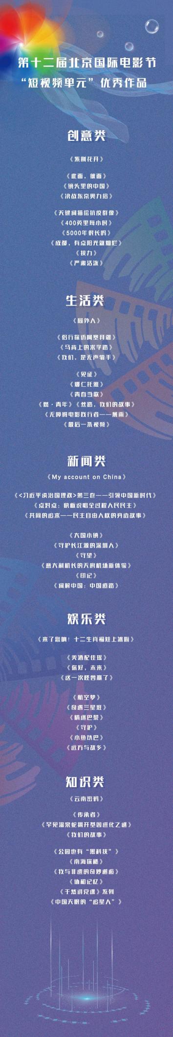 附;第十二届北京国际电影节“短视频单元”评选结果(制图:李安桐、刘喆)
