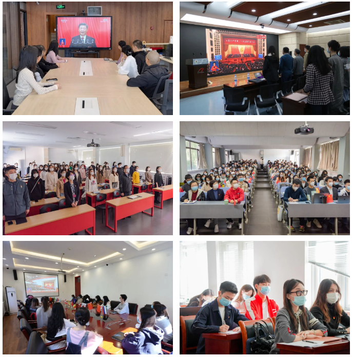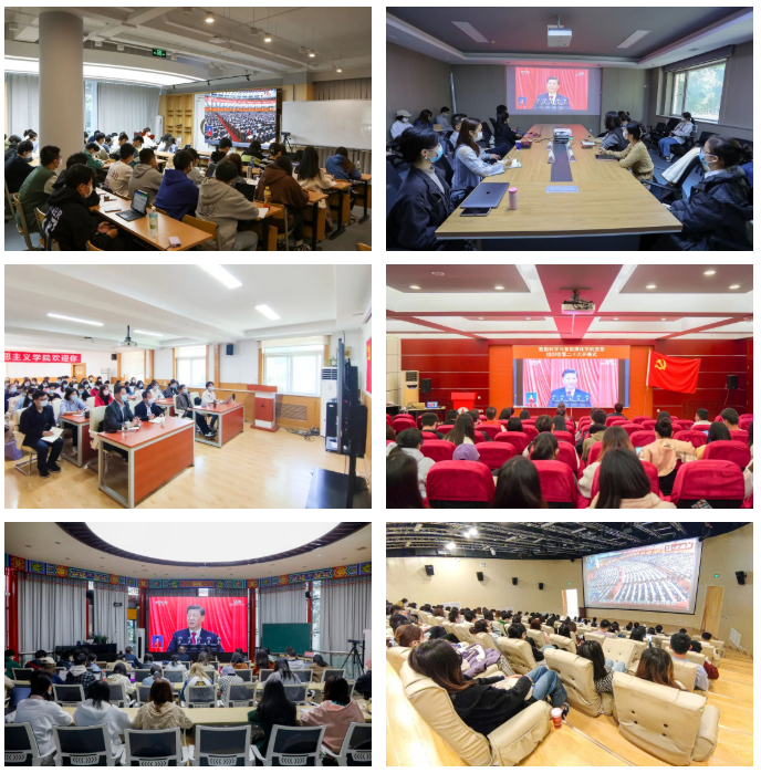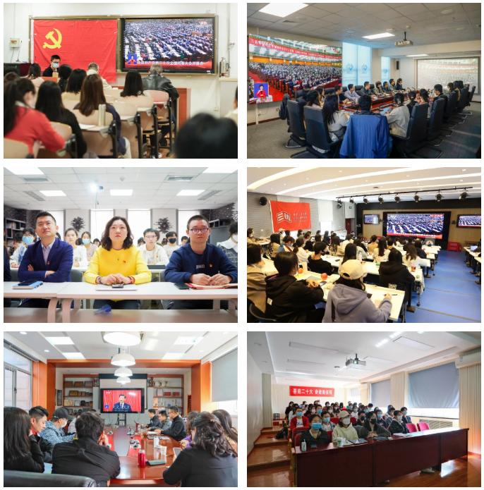 各基层党委、直属党支部积极组织广大党员干部师生在线上线下集中收看大会盛况,学习掌握会议主要精神。大家聚精会神地聆听,全神贯注地记录要点,被开幕会现场的热烈气氛和总书记振奋人心的报告深深感染,心潮澎湃,情不自禁地一次次热烈鼓掌。