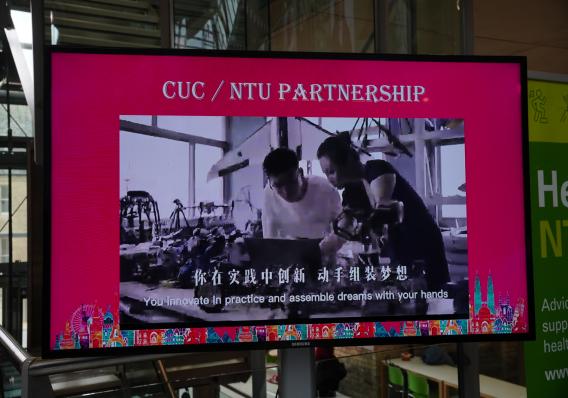 我校国际交流与合作处联合广告学院还为本次活动设计了易拉宝、海报。文化博览会展位上还滚动播出了中传校歌、招生宣传片和艺术创作作品,展示了我校学科特色和国际化办学成果。