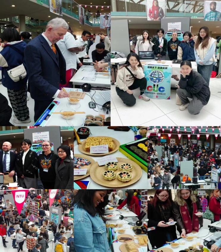 在3月2日举行的“2023全球周”博览会上,我校与诺丁汉特伦特大学中外合作办学硕士项目的学生,通过艺术和手工艺、音乐和食物,展示中华优秀传统文化。绿豆糕、沙琪玛、枣花糕、果丹皮等中国传统糕点吸引了现场外国朋友前来品尝;通过讲解中秋节的习俗,指导大家制作月饼,身着汉服的我校同学还在现场向大家展示了中国传统茶艺。展位上还设置了互动小游戏,为外国朋友介绍筷子的起源和如何正确使用筷子,诺丁汉特伦特大学外事副校长斯利安·赖恩教授也颇有兴致参与其中。