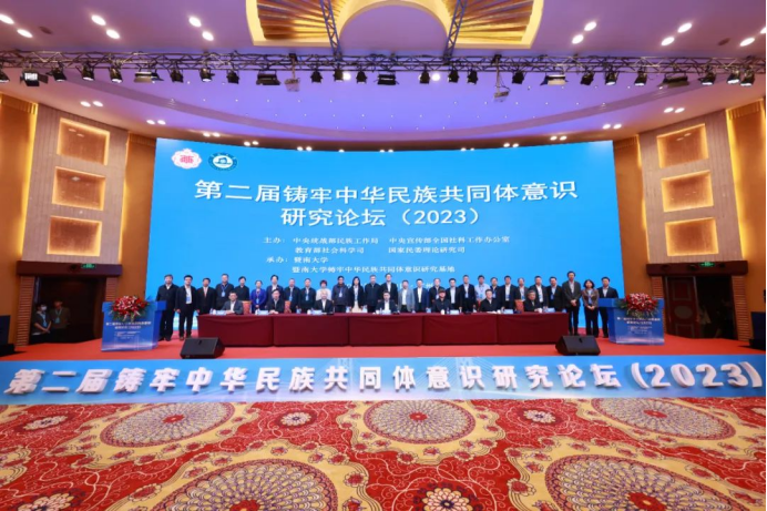 (通讯员 姬德强)4月27日,由中央统战部、中央宣传部、教育部、国家民委共同主办,暨南大学承办的“第二届铸牢中华民族共同体意识研究论坛”在广州举行。中央统战部副部长、国家民委主任、党组书记潘岳出席开幕式并发表主题演讲。大会公布了四部委第二轮“铸牢中华民族共同体意识研究基地”名单,中国传媒大学顺利入选。基地首席专家、新闻传播学部学部长高晓虹,科学研究处处长周建新,媒体融合与传播国家重点实验室教授姬德强参加论坛和基地授牌仪式,并在基地联席会议、主题分论坛等环节发言。