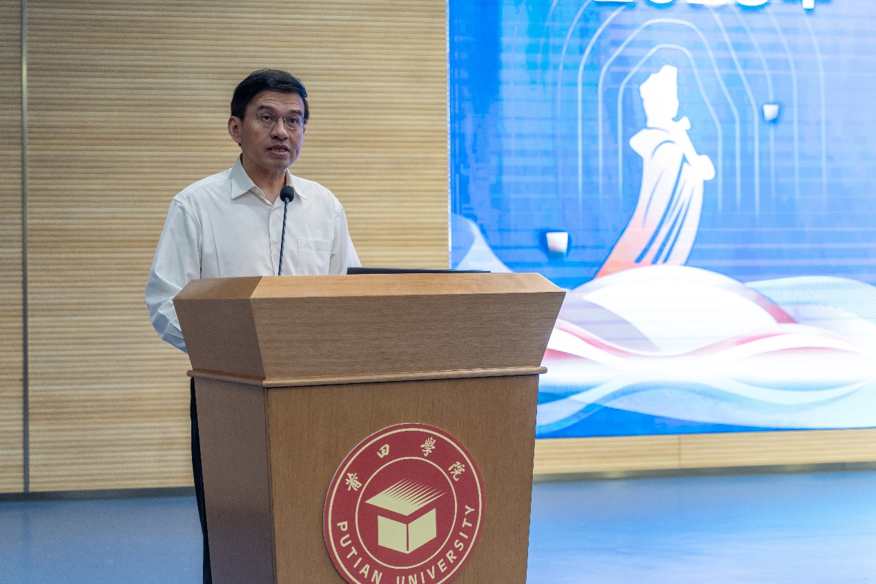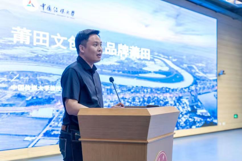 启动仪式后,我校广告学院副院长武定宇教授、福州大学厦门工艺美术学院黄志雄教授和莆田学院妈祖文化研究院于明华博士向在座嘉宾和莆田学院师生做了文创设计交流发言。