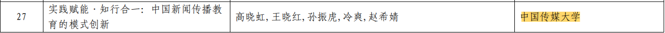 (通讯员 付李琢)近日,教育部完成了2022年高等教育国家级教学成果奖拟授奖成果的名单公示,我校2项成果入选2022年高等教育(本科)国家级教学成果奖二等奖,分别是高晓虹教授领衔的“实践赋能·知行合一:中国新闻传播教育的模式创新”和曾祥敏教授领衔的“面向国家战略的国际新闻传播人才培养体系建构”。