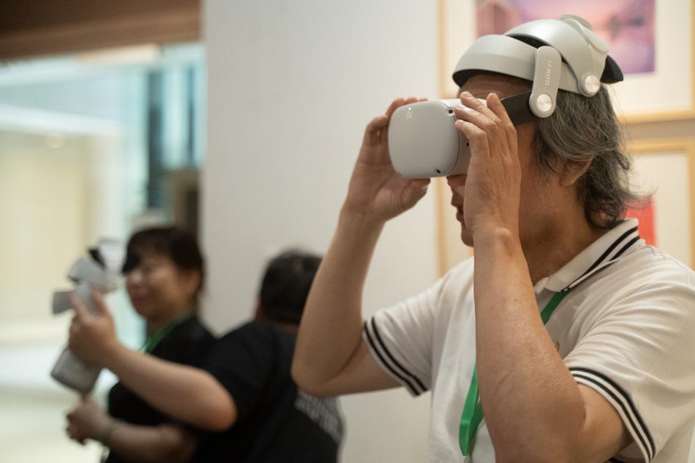 开幕式活动后,巡展嘉宾和观众一同参观了本次展览,冯杨老师为观众深情详细讲解了“百年经典”“红色主题”“国风生活”“百花齐放”四大版块的展品内容。漫画泰斗贺友直先生之女贺小珠女士则向观众细细讲述了《李双双》《山乡巨变》等名作背后的创作故事。此外,AR、VR等现代交互技术对绘本展品呈现的创新设计,也成为本次巡展的亮点之一。现代交互媒介与经典绘画文本的交织,为经典作品增添了现代活力,也为艺术的表达提供了新形式,观众通过沉浸式互动,增强了对绘本故事的临场式体验和多元化感受。